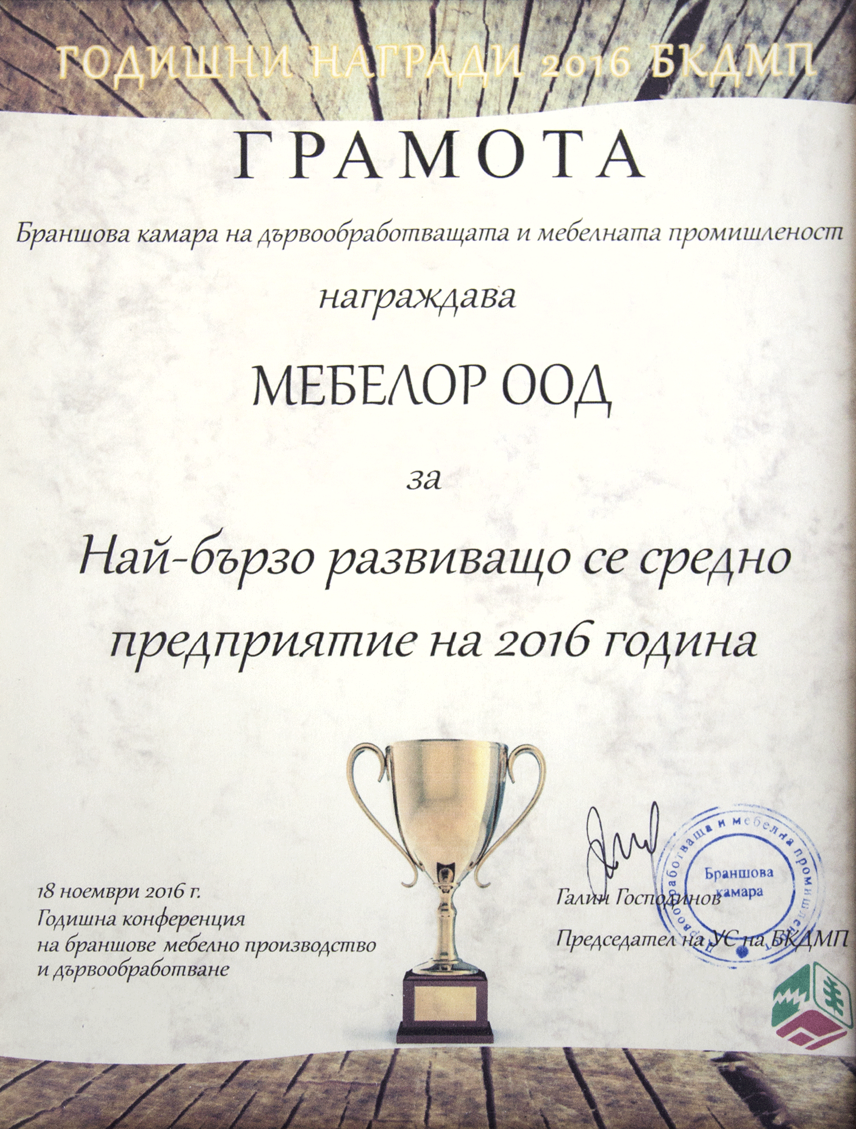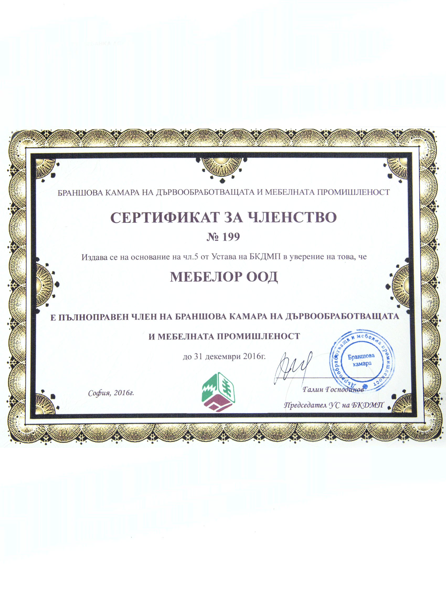 Сертификати издадени на MEBELOR